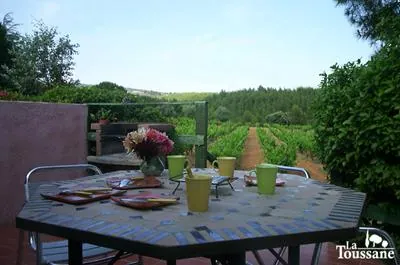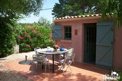 La petite maison des VIGNES aux murs d’ocres roses et aux volets bleu gris...