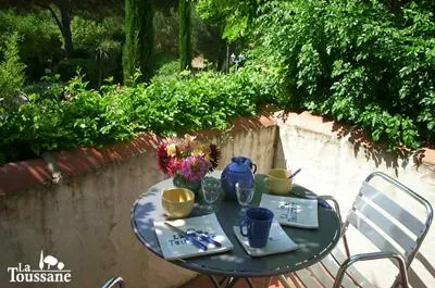 La Terrasse se situe en premier étage, dominant le jardin paysagé ...